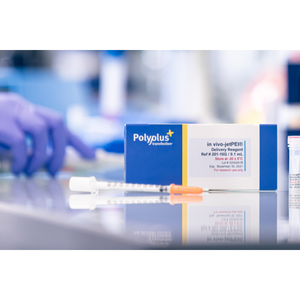 in vivo-jetPEI® is the most advanced in vivo transfection reagent for safe and efficient in vivo delivery of DNA, si/miRNA and other oligonucleotides in animal models. With a track record of over 700 publications, in vivo-jetPEI® is the consensual in vivo transfection method for in vivo functional studies, cancer research and immunization/vaccination.